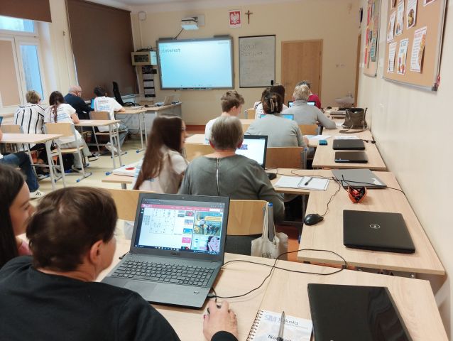 W tym ćwiczeniu Natalia zaprezentowała stronę https://pl.pinterest.com/. Seniorzy zobaczyli, że dzięki tej aplikacji można szukać inspiracji do rozwijania swoich zainteresowań. Uczennica zaproponowała, żeby seniorzy przy pomocy uczniów, odszukali tablicę z pinami zaproponowaną przez seniorów. Okazało się, że seniorzy chcieli zobaczyć np. szydełkowanie, stolarstwo, makramy, haftowanie. Widać było, że bardzo Pinterest wzbudził bardzo duże zainteresowanie wśród seniorów.