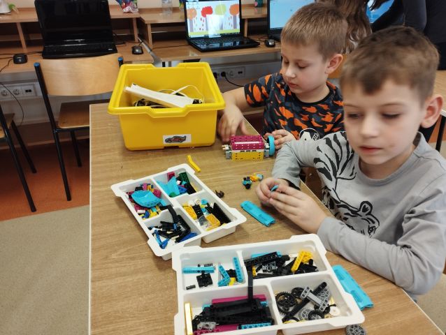 Nasi uczniowie zachwyceni możliwościami konstruowania projektów Lego, kontynuują swoją pracę.