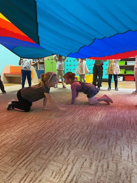 Potrzeba ruchu w wieku przedszkolnym jest naprawdę duża. Przedszkolaki czasem przypominają małe króliczki ze słynnej reklamy baterii. Różnica polega jednak na tym, że ich „bateryjki” wydają się być nie do wyczerpania ;-). Aktywność fizyczna w wieku przedszkolnym ma również nieocenione znaczenie dla wszechstronnego rozwoju dzieci. Dlatego też każdego dnia staramy się wyjść na przeciw tej potrzebie. Jedną z aktywności, w których dzieci uczestniczą z prawdziwą przyjemnością są zabawy z chustą animacyjną. Jeżeli dołączymy do nich kolorowe piłeczki – frajda jest jeszcze większa i przy okazji mamy uzdrawiającą terapię śmiechem.
