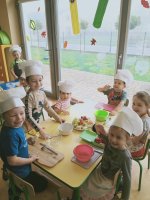 Skoro wiemy już tak wiele o ziemniaku i innych warzywach, to czas najwyższy poznać walory owoców. Jakie mamy owoce krajowe i zagraniczne, jaki mają smak, zapach, przekrój i co można z nich zrobić?…. To wiedza, która dla naszych przedszkolaków nie jest już tajemną. Uwieńczeniem zajęć w ramach projektu „Pyszny sposób na nudę...” było zrobienie i skonsumowanie pysznej sałatki owocowej.