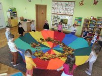 „Światowy Dzień Kartofla” – brzmi zabawnie? Tak też przebiegał – na dobrej zabawie, rozwijającej kreatywność, sprawność fizyczną i więzi koleżeńskie. Ziemniaczane święto obchodziliśmy w ramach realizacji ogólnopolskiego projektu „Pyszny sposób na nudę, czyli.... przedszkolna książka kucharska”. Dzieci wykonały pracę plastyczną z ziemniaczanych stempelków, stworzyły „Cudaki – Kartoflaki”, czyli ziemniaczane ludziki, a także uczestniczyły w zespołowych zawodach w zbieraniu ziemniaków.