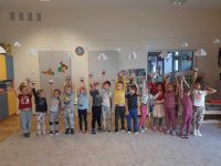 Nawiązując do Światowego Dnia Jabłka, dzieci z grupy 5-latków, poznały możliwości przetwarzania jabłek - musy, przeciery, dżemy, konfitury, kompoty itp. Podczas zajęć dzieci zwracały uwagę na spożywanie jabłek po uprzednim ich umyciu a także obraniu ze skórki. Tego dnia, przedszkolaki pod okiem nauczyciela wspólnie przygotowały pyszne i zdrowe prażone jabłka, które zamknęły we własnoręcznie przygotowanych i ozdobionych słoiczkach. Okazało się, że taki prosty deser niezwykle wpisał się w smaki naszych przedszkolaków.