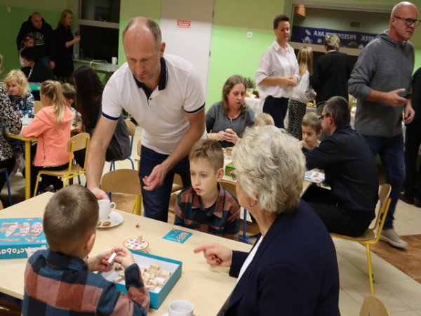 20 października w Przedszkolu w Zespole Szkół w Łukawcu odbył się II Festiwal Gier Planszowych, podczas którego przedszkolaki, ich rodzice, a także dyrekcja, nauczyciele oraz pracownicy niepedagogiczny przedszkola mierzyli swoje siły w grach planszowych, zakupionych z projektu „Podkarpackie Inicjatywy Lokalne 2021-2023 w minionym roku przedszkolnym. Podobnie jak w ubiegłym roku, impreza spotkała się z dużym zainteresowaniem i ciepłym odbiorem zarówno ze strony dzieci jak i rodziców. Przez ponad dwie godziny przedszkolaki uczestniczyły w emocjonujących rozgrywkach planszowych, które tym razem odbywały się przy herbatce, a właściwie przy całej gamie smakowitych herbat ziołowych. Promocja ziół doskonale wpisuje się w realizowaną w tym roku w przedszkolu inicjatywę nieformalnych grup lokalnych: Aktywni Łukawianie oraz Stowarzyszenia Koła Gospodyń Wiejskich Gminy Trzebownisko „Ziołowy Zakątek Przedszkola”, polegającą na stworzeniu ogrodu edukacyjnego dla dzieci, w którym uprawiane zioła, będą pielęgnowane przez same przedszkolaki. Inicjatywa ma na celu promocję prozdrowotnych właściwości ziół i zwiększenie świadomości najmłodszych w tym zakresie. Kolorowe, kuszące zapachami owocowo - ziołowe herbatki zostały sporządzone przez panie z przedszkolnej kuchni. Najlepszym dowodem ich doskonałego smaku był fakt, że dzbanki zostały opróżnione w całości. W Przedszkolu w Zespole Szkół w Łukawcu, realizującym program Przedszkole Promujące Zdrowie obok gimnastyki umysłu, jaką niewątpliwie umożliwiają gry planszowe i smakowitemu nawadnianiu organizmu ziołowymi herbatkami, nie mogło również zabraknąć tak istotnego dla zdrowia ruchu. Dlatego podczas imprezy pojawiły się także zabawy konkursowe, w trakcie których rodzice zmierzyli swoją prędkość, zwinność i umiejętność pracy z grupie w odniesieniu do konkurencyjnej drużyny, złożonej z ich pociech. Oczywiście zwyciężyły przedszkolaki.