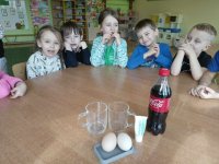 Dzieci w naszym przedszkolu uwielbiają bawić się w małych odkrywców. Wiedzą o tym Panie, które wzbogacają codzienne zajęcia o ciekawe doświadczenia, z których najmłodsi czerpią nie tylko radość, ale i wiedzę. Tym razem przedszkolaki miały okazję przekonać się jak ważne jest systematyczne mycie zębów i dbanie o właściwą higienę jamy ustnej. Dzieci zanurzały jajka w coca- coli, herbacie i kawie. Obserwowały jak wyraźnie przebarwiły się skorupki jajek. Pani wytłumaczyła, że dzieje się tak ponieważ zęby podobnie jak skorupki jajek zawierają wapń i tak samo jak skorupki, niszczą się nasze zęby jeśli nie dbamy o nie spożywając różne produkty i napoje. Dzieci z zapartym tchem obserwowały doświadczenie i zgodnie postanowiły, że będą codziennie dokładnie myć zęby.