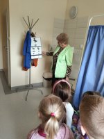 W lutym dzieci z naszego przedszkola odwiedziły babcię jednego z naszych przedszkolaków, która z zawodu jest higienistką. W bardzo ciekawy sposób opowiedziała nam czym się zajmuje oraz na czym polega jej praca. Pani Aleksandra zaprezentowała dzieciom przedmioty niezbędne do wykonywania tego zawodu i wyjaśniła do czego służą. Przedszkolaki miały okazję obejrzeć m.in. strzykawki, bandaże, ciśnieniomierz. Dzieci pokonały lęk przed zabiegami medycznymi, a przede wszystkim wzbogaciły i utrwaliły wiadomości na temat sposobów dbania o swoje zdrowie. Pani higienistka przypomniała dzieciom, jak ważne dla zdrowia jest spożywanie zdrowych produktów, owoców i warzyw. To był dobrze spędzony czas!