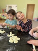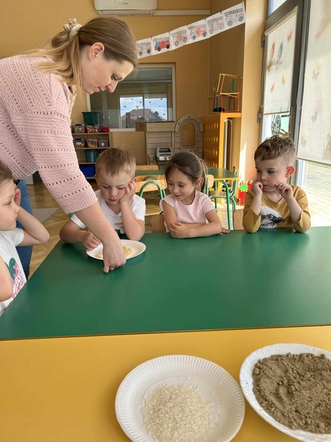 Grupa „Jeżyki” postanowiła urozmaić sobie dzień wykonując z pomocą pań masę sensoryczną. Ciastolina to nie tylko zabawa, ale również doskonały sposób na rozwój dziecięcych umiejętności i emocji. Poprzez ugniatanie, wałkowanie i lepienie dzieci mogą wyrażać swoje uczucia i komunikować się w wielu różnych wymiarach - zarówno z opiekunami, jak i innymi dziećmi. Ta plastyczna masa jest niezastąpionym narzędziem terapeutycznym, pomagającym w rozwoju koordynacji wzrokowo-ruchowej, motoryki małej, koncentracji, wyobraźni. Jest także skutecznym narzędziem w pracy nad złością i agresją, umożliwiając dzieciom wyrażanie swoich emocji poprzez formowanie, ściskanie, szczypanie czy nawet rzucanie ciastoliną.