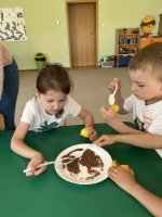 W jednym z radosnych dni w naszym przedszkolu odbyła się niezwykła przygoda kulinarnej odkrywczości - robienie sałatki owocowej! Atmosfera w sali była napełniona entuzjazmem, gdy dzieci wchodziły, pełne ciekawości, co je czeka. Dzieci były prowadzone przez proces mycia, krojenia i układania owoców. Nie było tu miejsca na nudę! Dzieci z uśmiechami na twarzach wylewały całą swoją kreatywność, tworząc sałatki owocowe, które były zarówno smakowite, jak i wyjątkowo atrakcyjne dla oka. Ich entuzjazm i radość były niewątpliwie zaraźliwe! Kiedy sałatki były gotowe, przyszedł czas na degustację. Przedszkolaki z grupy „Liski” z zapartym tchem próbowały swoich dzieł, śmiejąc się i dzieląc się wrażeniami z kolegami i koleżankami. Była to prawdziwa uczta dla zmysłów i okazja do chwalenia się swoimi talentami kulinarnymi. To wyjątkowe wydarzenie nie tylko dostarczyło dzieciom wielu pozytywnych emocji połączonych z zabawą, ale także poszerzyło ich horyzonty kulinarno-zdrowotne. Dzięki temu doświadczeniu dzieci miały okazję nauczyć się o wartościach odżywczych owoców oraz doświadczyć przyjemności wspólnego gotowania i jedzenia w miłej atmosferze.