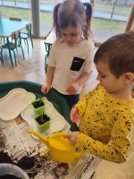 We wszystkich grupach w marcu można było poczuć już wiosnę. Choć na zewnątrz pogoda w kratkę, to w salach zrobiło się kolorowo. Wiosenne ogródki w przedszkolu to wspaniała inicjatywa, która pozwala dzieciom nawiązać bliski kontakt z naturą, rozwijać umiejętności obserwacyjne oraz uczyć się odpowiedzialności za rośliny. Dzieci chętnie angażowały się w sadzenie roślinek – kwiatów np. narcyzów, tulipanów, bratków i warzyw – cebuli i fasoli. Potem je z ciekawością obserwowały, jak rosną i jakie zmiany zachodzą i co się z nimi dzieje. Podczas sadzenia roślin dzieci mogły uczyć się o cyklu życia roślin oraz ich potrzebach, jak woda, słońce, gleba. Samodzielne uprawianie warzyw już od wczesnych lat dziecięcych może zwiększyć motywację do zdrowego odżywiania się w wieku późniejszym.