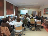 Seniorzy wraz z uczniami w grupach zastanawiali się z jakimi sprawami chodzi się do urzędu, następnie prowadzący pokazał, że większość tych spraw można załatwić nie wychodząc z domu. Wyświetlony został kanał Ministerstwa Cyfryzacji w serwisie Youtube i pokazane zostały niektóre filmy instruktażowe. Prowadzący omówił też najważniejsze elementy strony https://www.gov.pl/.