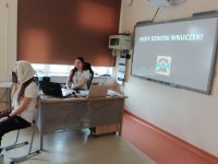 Seniorzy wraz z uczniami w grupach zastanawiali się z jakimi sprawami chodzi się do urzędu, następnie prowadzący pokazał, że większość tych spraw można załatwić nie wychodząc z domu. Wyświetlony został kanał Ministerstwa Cyfryzacji w serwisie Youtube i pokazane zostały niektóre filmy instruktażowe. Prowadzący omówił też najważniejsze elementy strony https://www.gov.pl/.