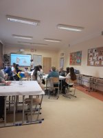 Z pomocą prezentacji multimedialnej, prowadzący krótko przedstawił bieżące zagadnienia: program antywirusowy i jego aktualizacje, tworzenie silnych haseł, aktualizacje oprogramowania i sprzętu oraz podstawowe zasady bezpieczeństwa w sieci. Część pojęć była niezrozumiała dla seniorów i tutaj z pomocą przyszli uczniowie, którzy bardzo dobrze wyjaśnili dane pojęcia. Następnie seniorzy i uczniowie podzielili się na 3 grupy.