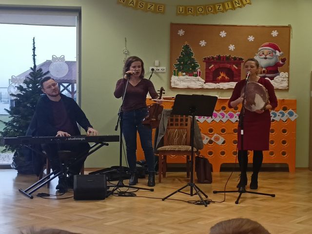We wtorek grupa „Wiewiórek” zamieniła przedszkolną stołówkę w salę koncertową, na której obok wierszyków i piosenek wybrzmiał utwór muzyki poważnej, zagrany na instrumentach perkusyjnych.