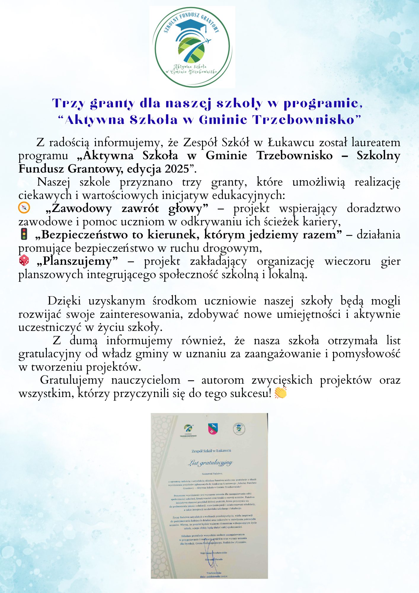 W dniu 13.10.2025r. uczniowie klas ósmych Zespołu Szkół w Łukawcu wzięli udział w obchodach Dnia Ratownictwa Medycznego. Wydarzenie miało miejsce w Urzędzie Wojewódzkim w Rzeszowie. Młodzież poznała sposoby skutecznego zachowania się w sytuacjach zagrożenia zdrowia i życia człowieka. Była to dla nas bardzo cenna lekcja, a wszyscy uczestnicy zostali obdarowali gadżetami odblaskowymi z ważnymi numerami alarmowymi.