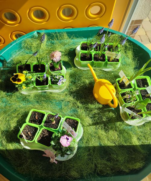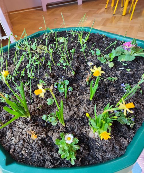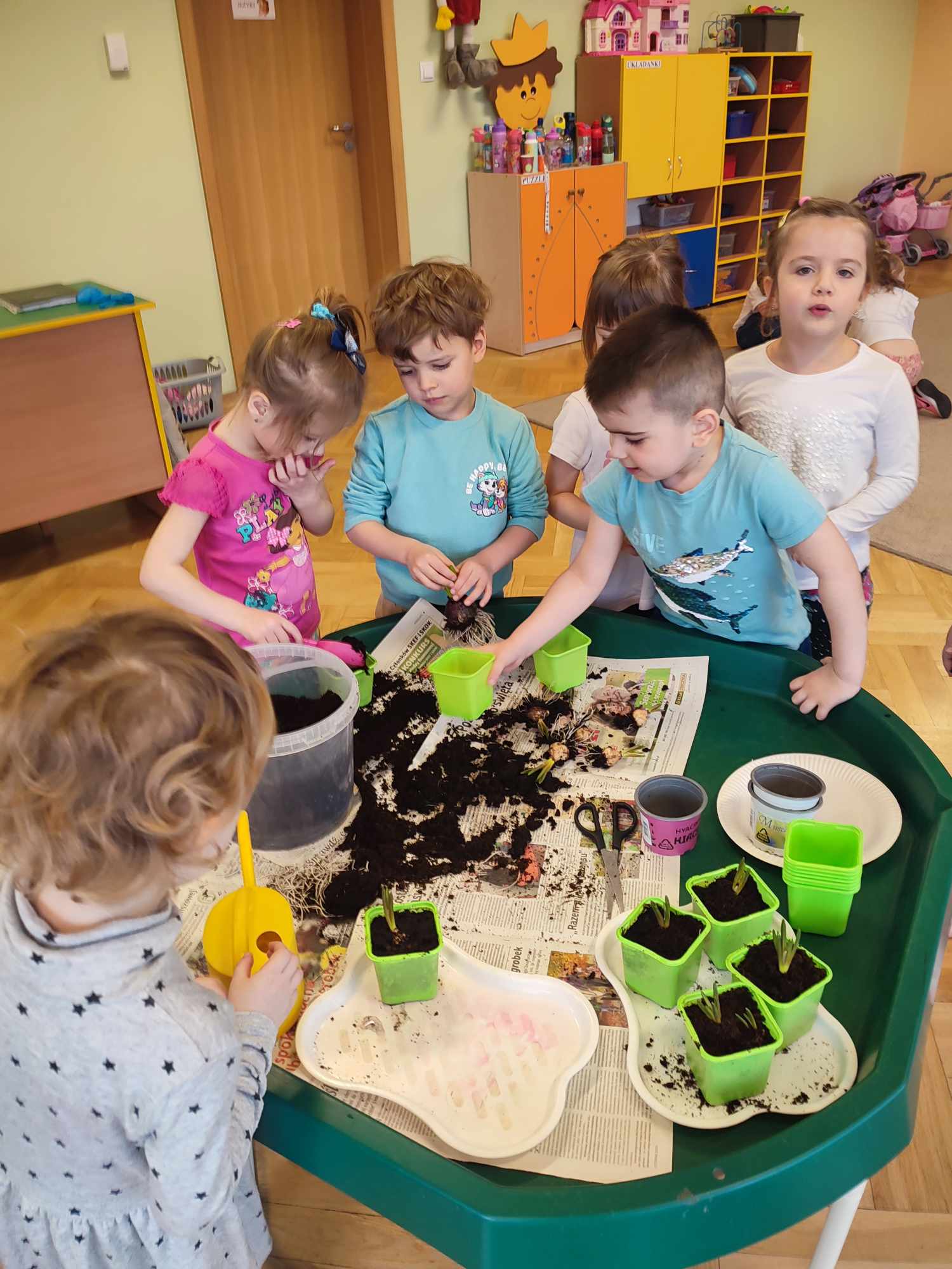 We wszystkich grupach w marcu można było poczuć już wiosnę. Choć na zewnątrz pogoda w kratkę, to w salach zrobiło się kolorowo. Wiosenne ogródki w przedszkolu to wspaniała inicjatywa, która pozwala dzieciom nawiązać bliski kontakt z naturą, rozwijać umiejętności obserwacyjne oraz uczyć się odpowiedzialności za rośliny. Dzieci chętnie angażowały się w sadzenie roślinek – kwiatów np. narcyzów, tulipanów, bratków i warzyw – cebuli i fasoli. Potem je z ciekawością obserwowały, jak rosną i jakie zmiany zachodzą i co się z nimi dzieje. Podczas sadzenia roślin dzieci mogły uczyć się o cyklu życia roślin oraz ich potrzebach, jak woda, słońce, gleba. Samodzielne uprawianie warzyw już od wczesnych lat dziecięcych może zwiększyć motywację do zdrowego odżywiania się w wieku późniejszym.