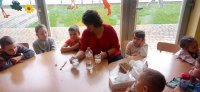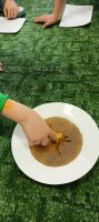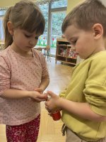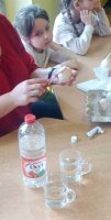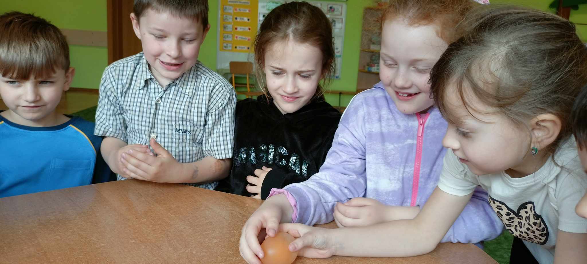 Dzieci z grupy "Liski" 9 kwietnia 2025 r. wykonały eksperyment z jajkiem pt. „Dlaczego warto myć zęby?”. Dzieci mogły zobaczyć, co dzieje się ze skorupką jajka, kiedy przebywa w środowisku kwaśnym (ocet) i jest posmarowane pastą do zębów, a co dzieje się w tym samym środowisku bez tej ochrony. Po włożeniu do octu, na skorupce niezabezpieczonego pastą do zębów jajka natychmiast pojawiły się bąbelki gazu. Oznacza to, że wapń zaczął się rozpuszczać. Podobnie szkliwo zębów, pozostające bez ochrony, jest narażone na atak niszczących je bakterii i kwasów. Dlatego regularne mycie zębów ma tak wielkie znaczenie ochronne. Jest ono istotne z kilku powodów: zapobiega próchnicy, gdyż regularne szczotkowanie zębów usuwa osad i resztki jedzenia, które mogą prowadzić do rozwoju bakterii powodujących próchnicę; pomaga w zapobieganiu chorobom dziąseł, takim jak zapalenie czy paradontoza, które mogą prowadzić do utraty zębów; powoduje, że oddech staje się świeży, gdyż usuwa bakterie i resztki jedzenia, które mogą powodować nieświeży oddech. Zdrowe zęby i dziąsła to istotny czynnik ogólnego stanu zdrowia każdego człowieka, ponieważ choroby jamy ustnej mogą być powiązane z innymi schorzeniami, takimi jak choroby serca czy cukrzyca. Dlatego przypomniano dzieciom, że warto myć zęby co najmniej dwa razy dziennie, korzystając z pasty zawierającej fluor oraz pamiętać o regularnych wizytach u dentysty, by sprawdzać stan swojego uzębienia.