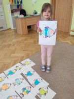 Z tej okazji pani pedagog Iwona Wielgut oraz pani psycholog Zuzanna Grzesik, podczas krótkiej pogadanki omówiły dzieciom zasady „Magicznych Kroków Zgody”, a następnie plakaty zostały umieszczone w sali na widocznej tablicy.