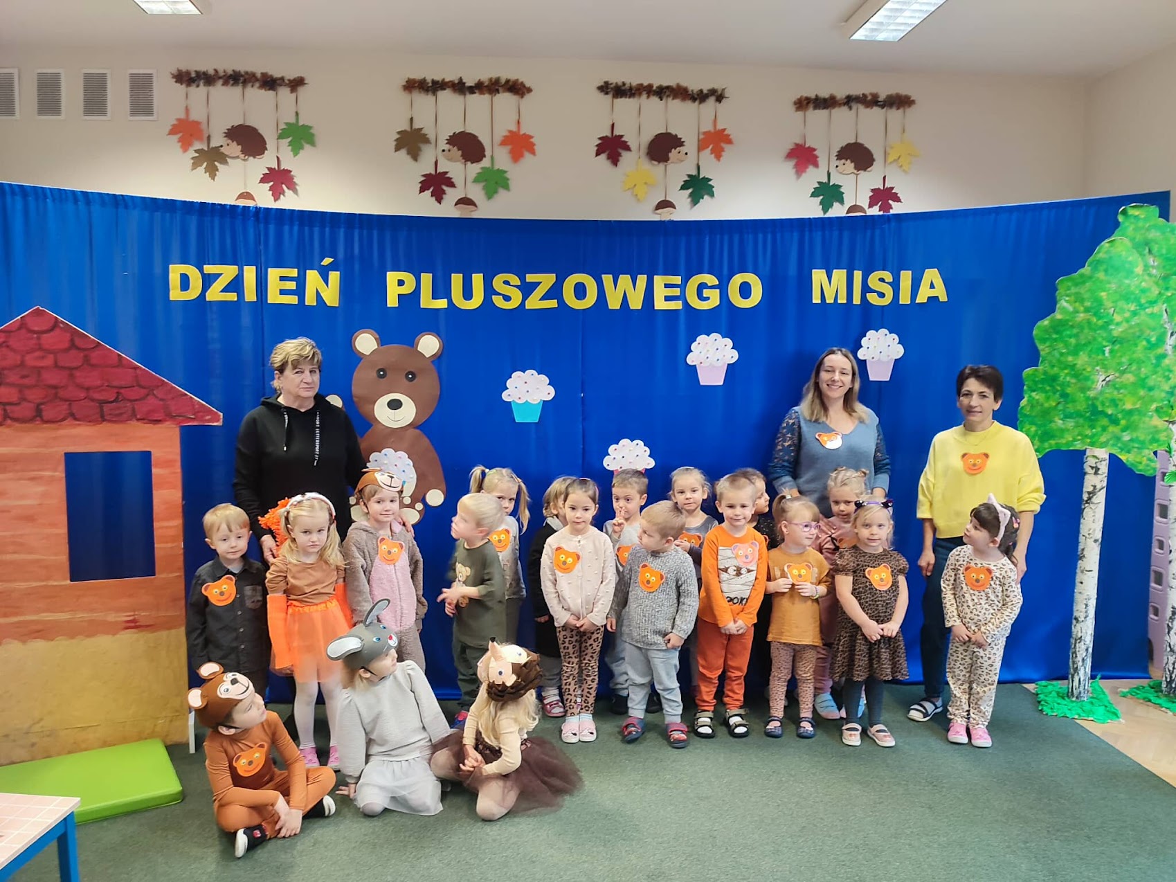 Ze względu na ogrom listopadowych atrakcji Dzień Pluszowego Misia obchodzony każdego roku 25 listopada świętowaliśmy z trzydniowym opóźnieniem. W tym roku grupa „Jeżyków” zaprosiła przedszkolaki na spektakl „Urodziny Misia” przygotowany pod okiem wychowawców – pań: Joanny Michno i Janiny Kaproń z pomocą pani Anny Bieniasz. Dalsze obchody uroczystości odbywały się w ramach grup z udziałem pluszowych przyjaciół, przyniesionych z domu przez dzieci.