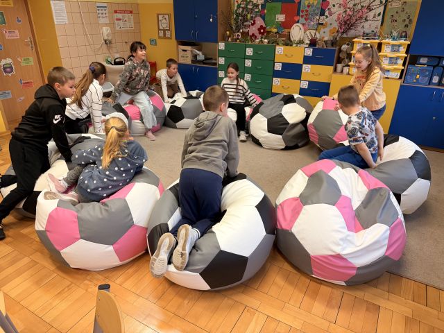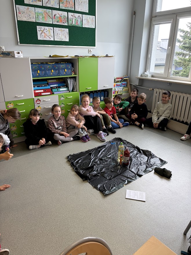 Dzieci z klasy 1a, brały udział w muzyczno-plastycznej zabawie sensomotorycznej pt. Czerwona...