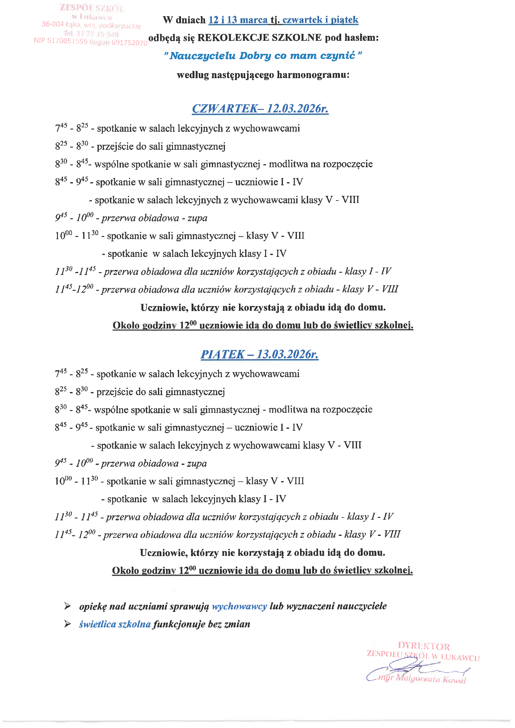 Dyrektor Zespołu Szkół w Łukawcu informuje,że Rekrutacja do klasy I Szkoły Podstawowej w Zespole...